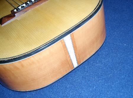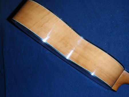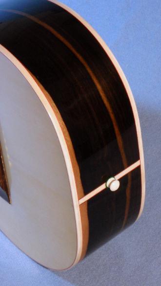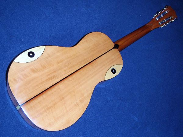 | No. 7 has maple/ebony/pearl inlays in the upper and lower bouts on the back and an ebony back strip. Some say this looks like a "yin-yang" decoration. |