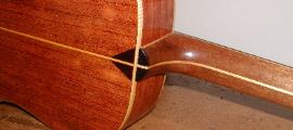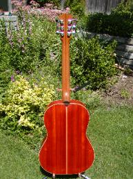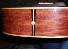 2005-02 Woodcraft padauk sides and back, cedar top, lumberstore mahogany neck with padauk center lamination, padauk & maple rosette, padauk peghead overlay, and (very gaudy) padauk & maple bridge.